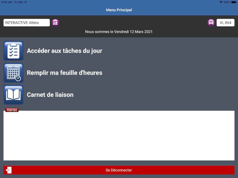 Vous permet d'accéder à vos tâches du jour, remplir les feuilles d'heures, ou encore inscrire